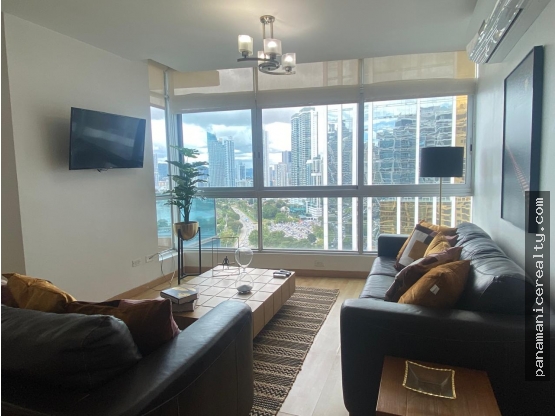 Apartamento en alquiler ubicado PH Bayfront, sobre la reconocida Avenida Balboa en Ciudad de Panamá. Ofrece una distribución funcional y cómoda que incluye sala, comedor, cocina y lavandería, una amplia recámara principal con baño privado y walk-in closet, baño de visitas, balcón con hermosa vista al mar y un estacionamiento de doble fondo.