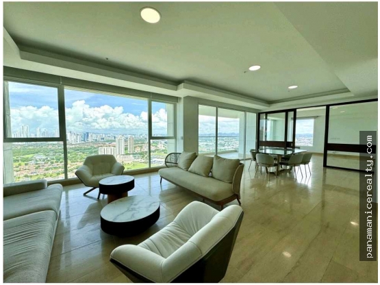 El apartamento cuenta con un amplio depósito en planta baja, vistas panorámicas de 360 grados al mar, la ciudad y las montañas y está completamente. Cuenta con acondicionado central, TV inteligente LED Samsung, cortinas eléctricas, lavadora-secadora y refrigeradora.